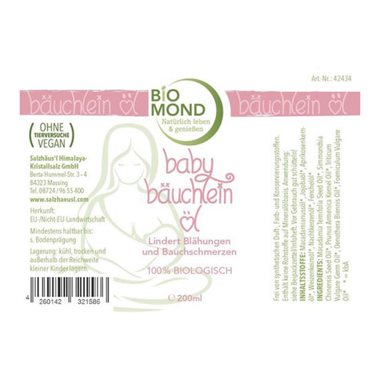 Das BIO Babybäuchleinöl von Biomond ist ein reines Naturprodukt, das auf kalt gepressten Pflanzenölen in Bio-Qualität basiert – ganz ohne künstliche Zusätze oder Inhaltsstoffe auf Mineralölbasis. Die sorgfältig abgestimmte Rezeptur pflegt die zarte Babyhaut auf besonders milde Weise und eignet sich ideal für die entspannende Bauchmassage bei Blähungen oder 3-Monats-Koliken.