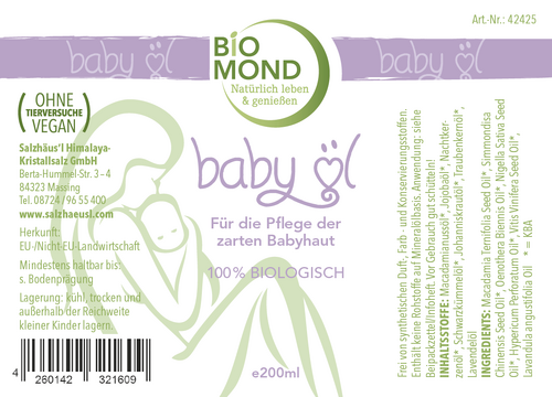Das BIO Babyöl von Biomond wurde speziell für die Bedürfnisse empfindlicher Babyhaut entwickelt. Die besonders milde Komposition aus kalt gepressten Bio-Pflanzenölen pflegt und beruhigt die Haut sanft – ganz ohne künstliche Zusätze. Es eignet sich hervorragend für die tägliche Babymassage, zur sanften Reinigung im Windelbereich oder zur Pflege trockener Hautstellen.