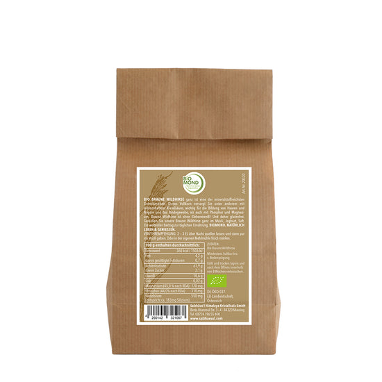 Unsere BIO BRAUNE WILDHIRSE (Wildform) von BIOMOND ist eine der mineralstoffreichsten Getreidesorten. Unter anderem ist sie reich an siliziumhaltiger Kieselsäure. Sie ist vor allem wichtig bei der Bildung von Haaren, Nägeln und dem Bindegewebe. Außerdem ist sie reich an Zink, Magnesium, Fluor und Eisen, sowie den Vitaminen B1, B2, B6 und Pantothensäure. Das wertvolle Urgetreide erhalten Sie mit diesem Produkt in einer biologischen Top-Qualität.
