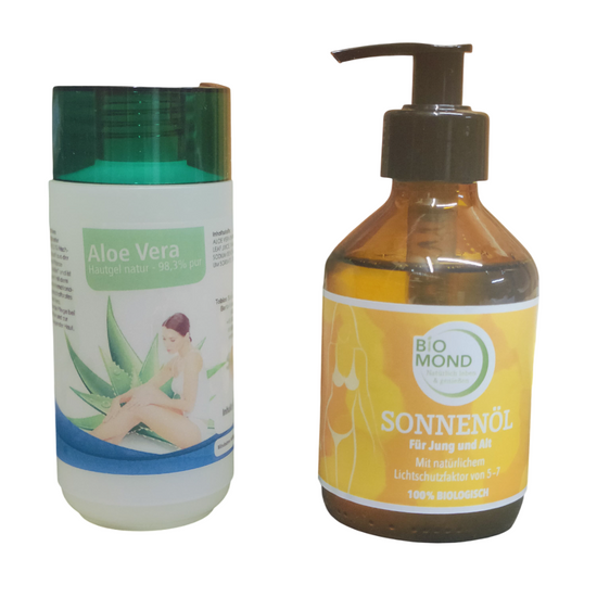 Sonnenpflege-Set: Natürliches Sonnenöl + Aloe Vera Hautgel, je 200 ml, SOMMERANGEBOT